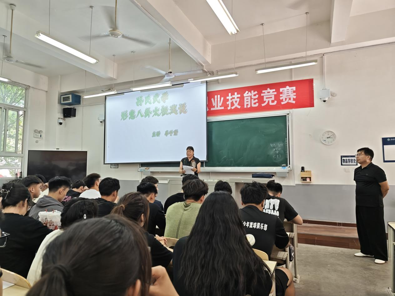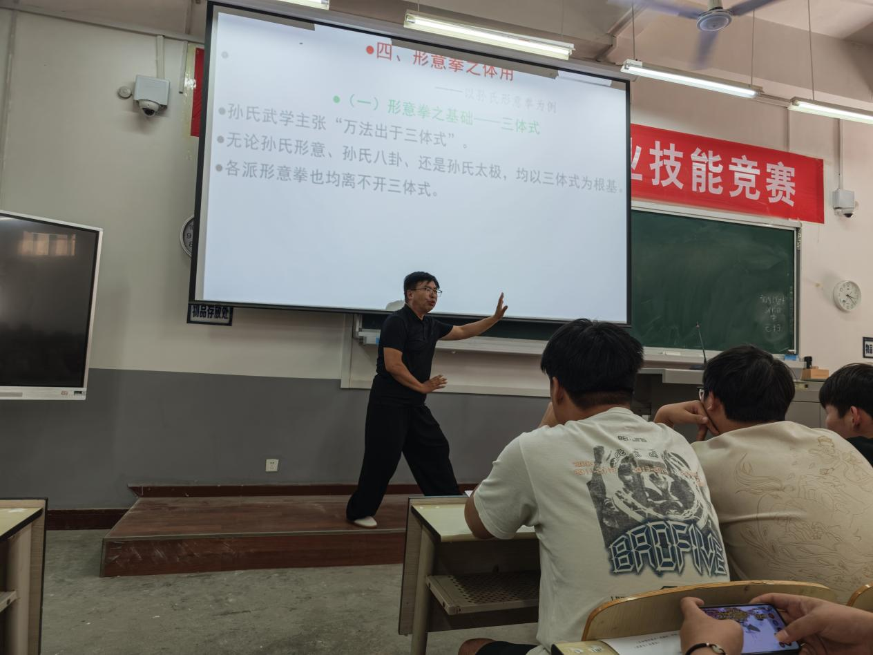 作为三门峡武术界的资深专家,李子蔚老师深耕孙氏武学多年,对形意拳、太极拳、八卦拳的理论与实践均有深刻研究。讲座中,李老师以“孙氏武学的历史脉络与文化内核”为引,结合自身习练与教学经验,从三拳的起源、核心技法、实战应用及养生价值等维度展开讲解。他以形意拳的“刚猛崩炸”、太极拳的“以柔克刚”、八卦拳的“走转灵活”为对比,生动阐释了三拳“同根同源、各有侧重”的武学特点,并通过现场示范动作要领,帮助师生直观感受传统武术的独特魅力。