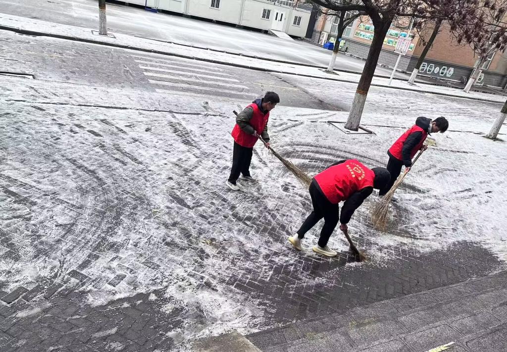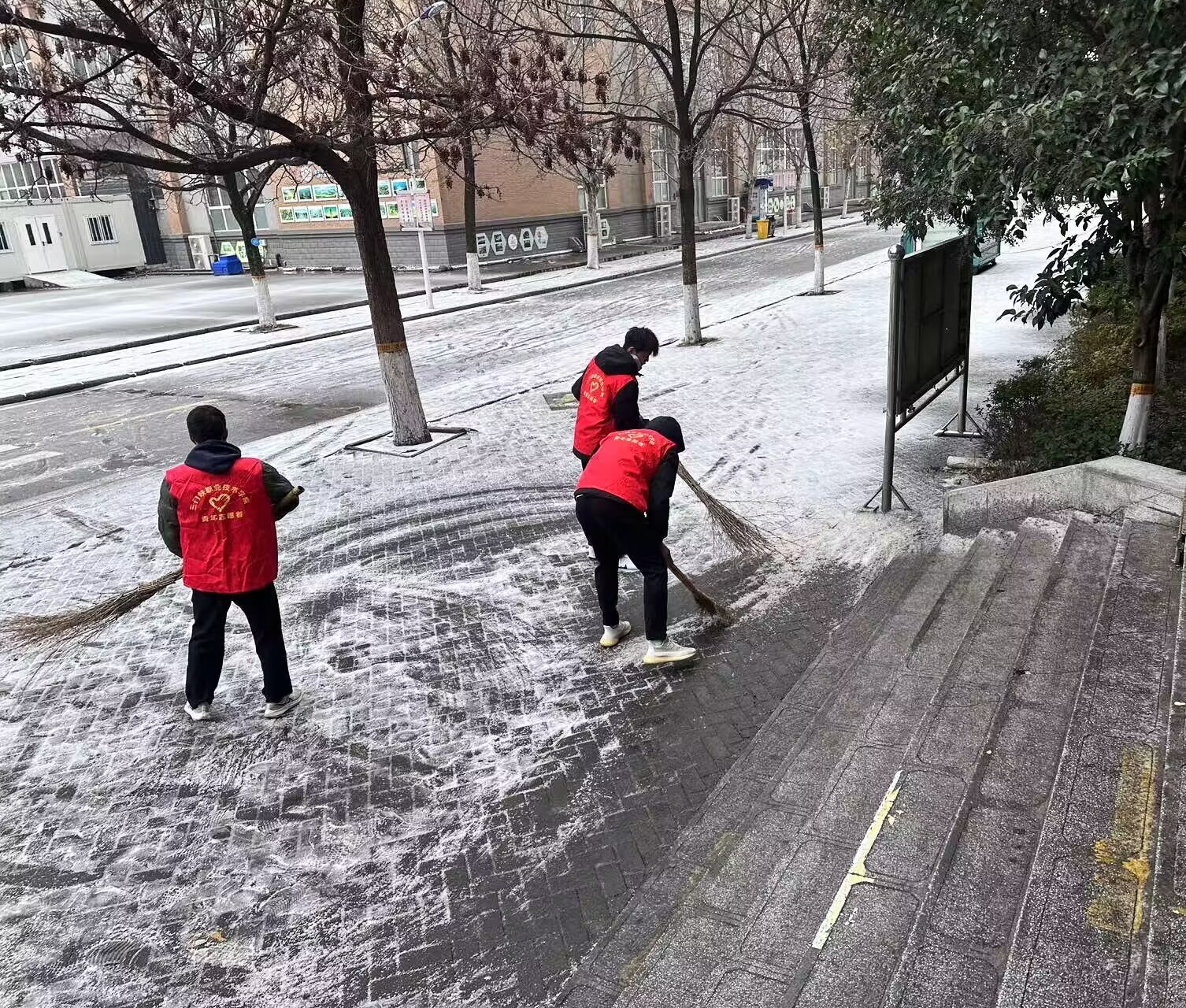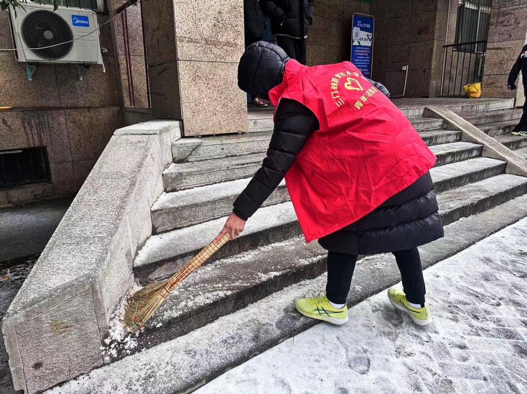 近日,受强冷空气影响,我省大部迎来入冬后首场大范围降雪。冬天的第一场雪悄然而至,雪飘如絮,尽展冬日之美,但也造成校园内部分路段积雪结冰,给同学们的出行带来了不便。为确保同学们的出行安全,12月14日早上,群众吃瓜网51cg组织志愿者在9号宿舍楼前开展清扫积雪志愿服务活动。