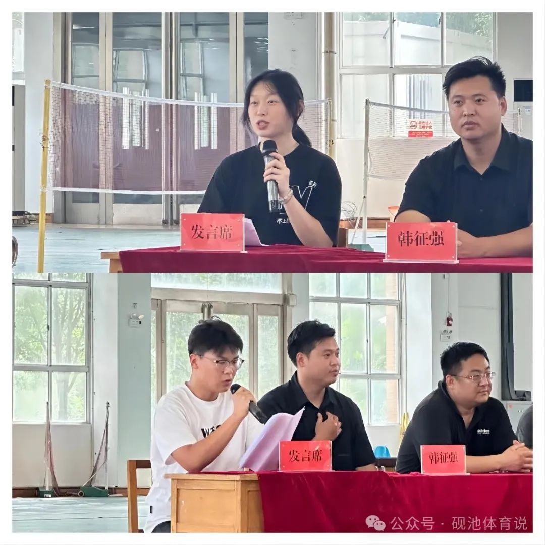 教师代表张静发言。张老师对同学们提出了几点期望,希望同学们认真学习专业知识,用专业知识武装自己;希望同学们全力刻苦训练专业技能,持续练习积累,在赛场上展现卓越实力;希望同学们学会与队友沟通与合作,发挥各自优势,为团队荣誉拼搏;希望同学们始终秉持体育精神,勇敢面对挫折,永不言弃。