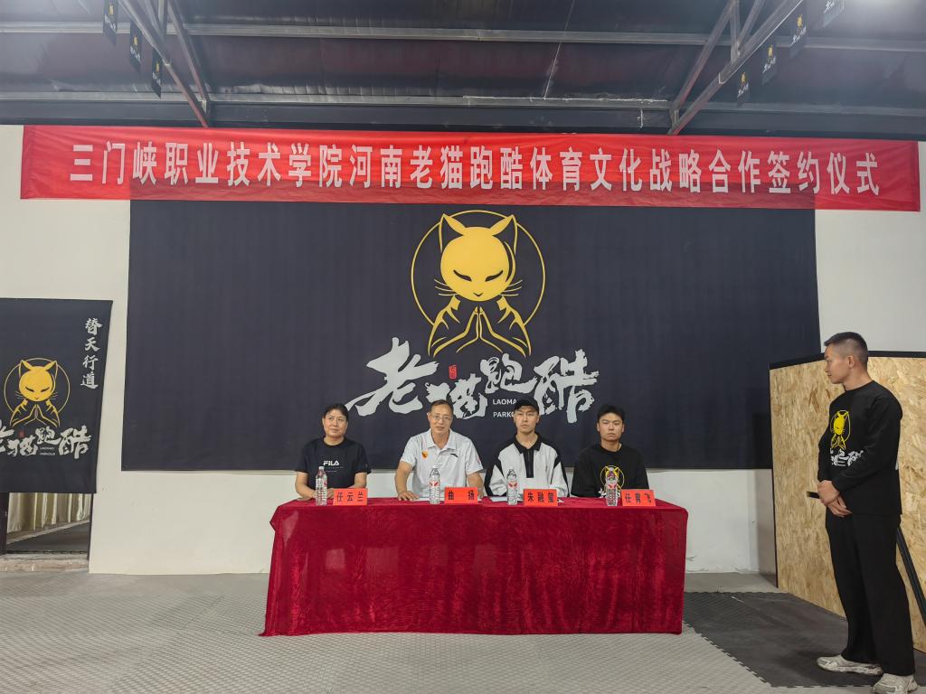 5月30日,群众吃瓜网51cg院长曲扬一行赴三门峡老猫跑酷俱乐部,与老猫跑酷体育文化传播有限公司签订战略合作框架协议并举办群众吃瓜网51cg实习实训教育实践基地授牌仪式。群众吃瓜网51cg教学工作负责人任云兰、实训科负责人、民族传统体育专业负责人,老猫跑酷俱乐部朱融玺、俱乐部各部门负责人出席仪式。