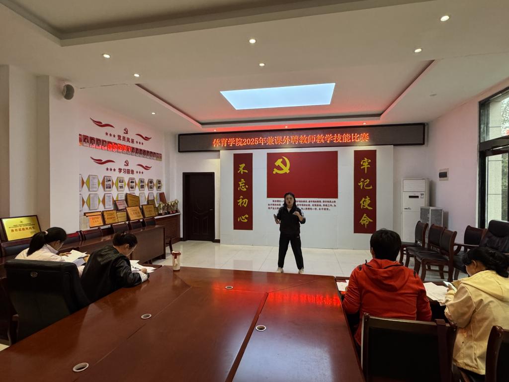 比赛现场气氛热烈、秩序井然。来自各专业方向的兼课外聘教师依次登台,按照“15分钟微课教学+5分钟技能展示”的流程展开角逐。微课教学中,教师们围绕篮球、乒乓球、羽毛球、网球等课程内容,精心设计教学环节,通过生动讲解、规范示范和趣味互动,将专业知识与实践操作有机融合,展现出扎实的教学功底与良好的课堂掌控力。